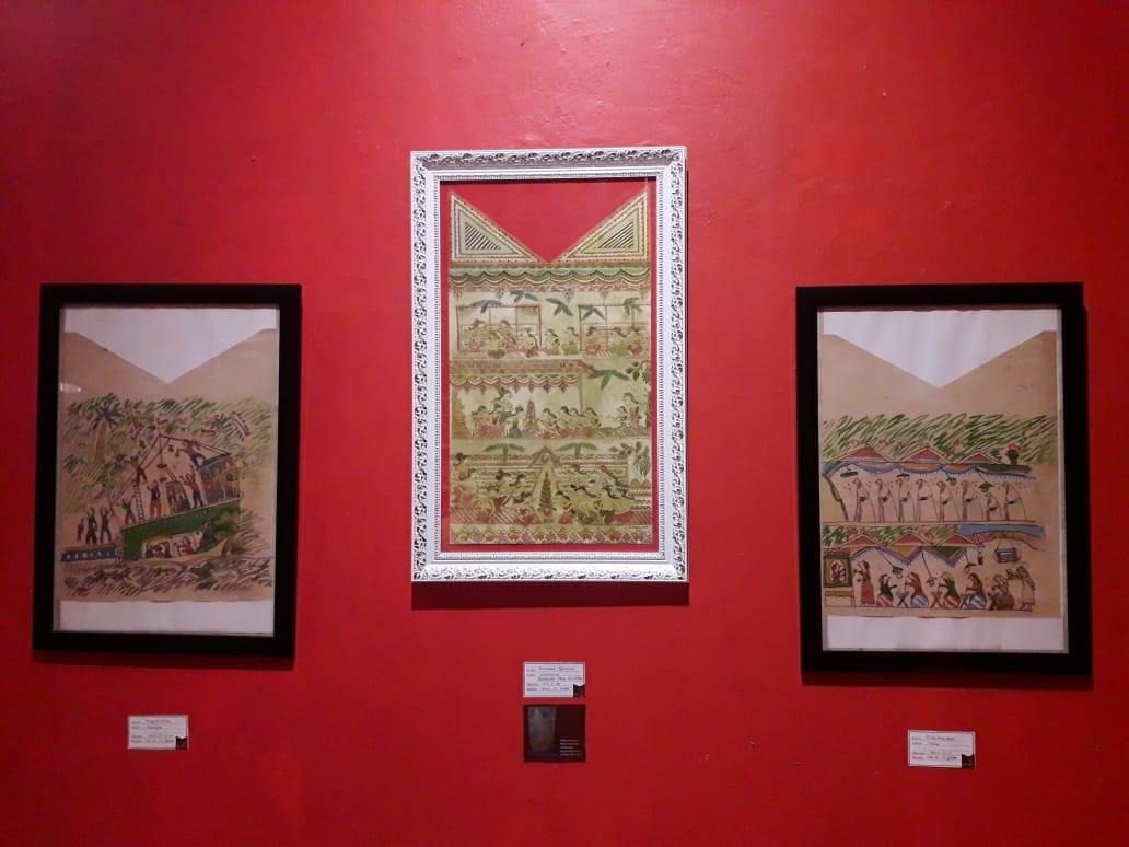 Keterangan: Dua lukisan damar kurung karya Masmundari mengapit satu lukisan karya Kiai Untung yang direstorasi oleh Rachmad Basuki.
