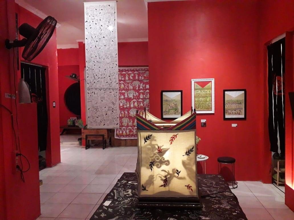 Keterangan: Ruang pameran seni rupa Damar Kurung Melintas Waktu di Senja Jingga Cafe (Gresik)