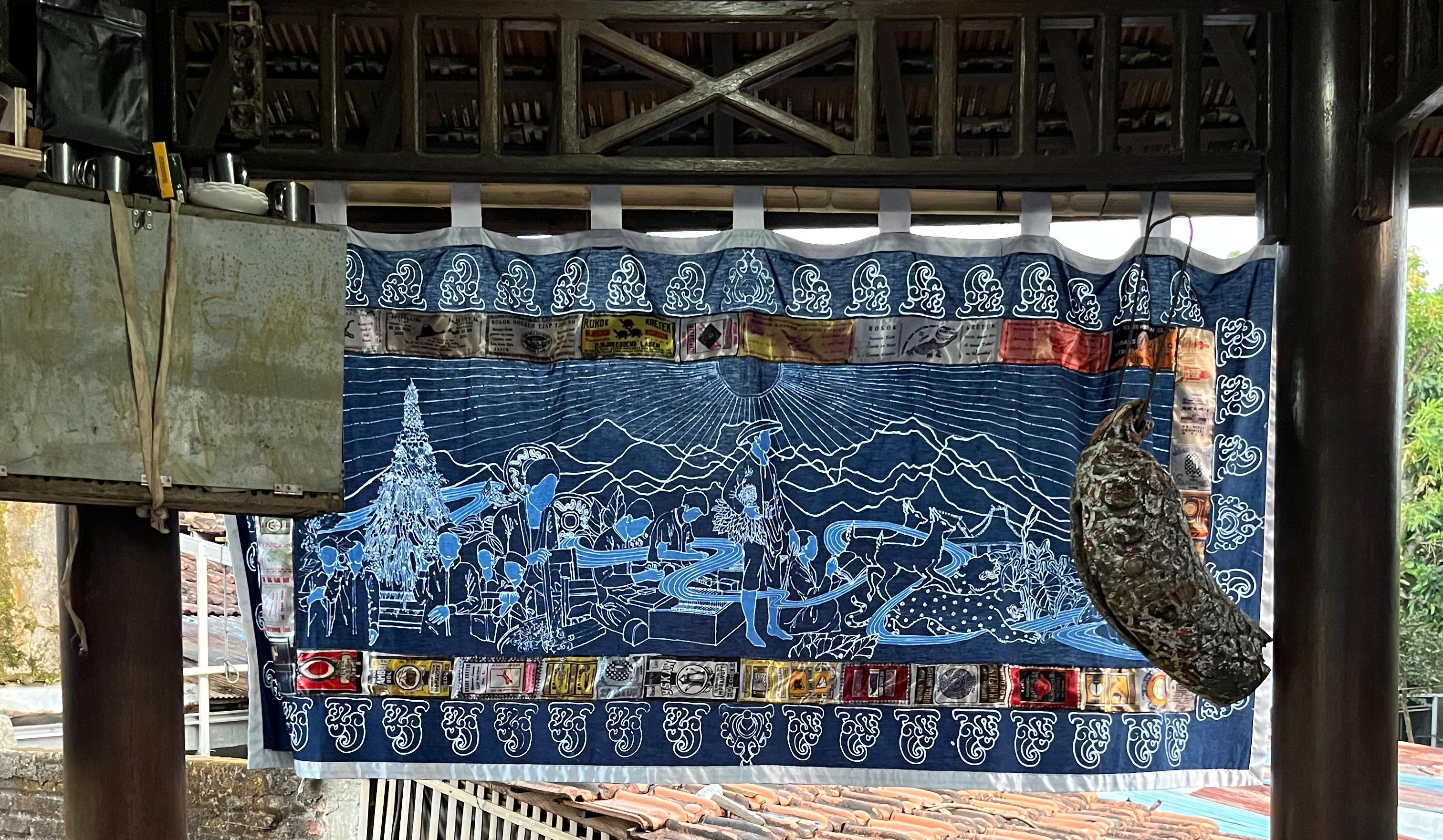 Sementara praktik membatik rokok dengan kopi atau nglelet (rokok-rokok itu racikan warga Piji Wetan, Mbah Gito) menjadi bagian dari aktivisme warga atau siapa saja yang akan mencobanya di cakruk. Secara umum karya ini menampilkan jejak langkah kehidupan keseharian warga desa di Muria, khususnya Piji Wetan, yang senantiasa berhubungan dengan kerja-kerja pelestarian secara organik dan autentik. Kait tarik Lasem dan Kudus, itulah yang hendak digarisbawahi oleh Divasio P. Suryawan dalam narasi visual yang berkelindan dalam batik.