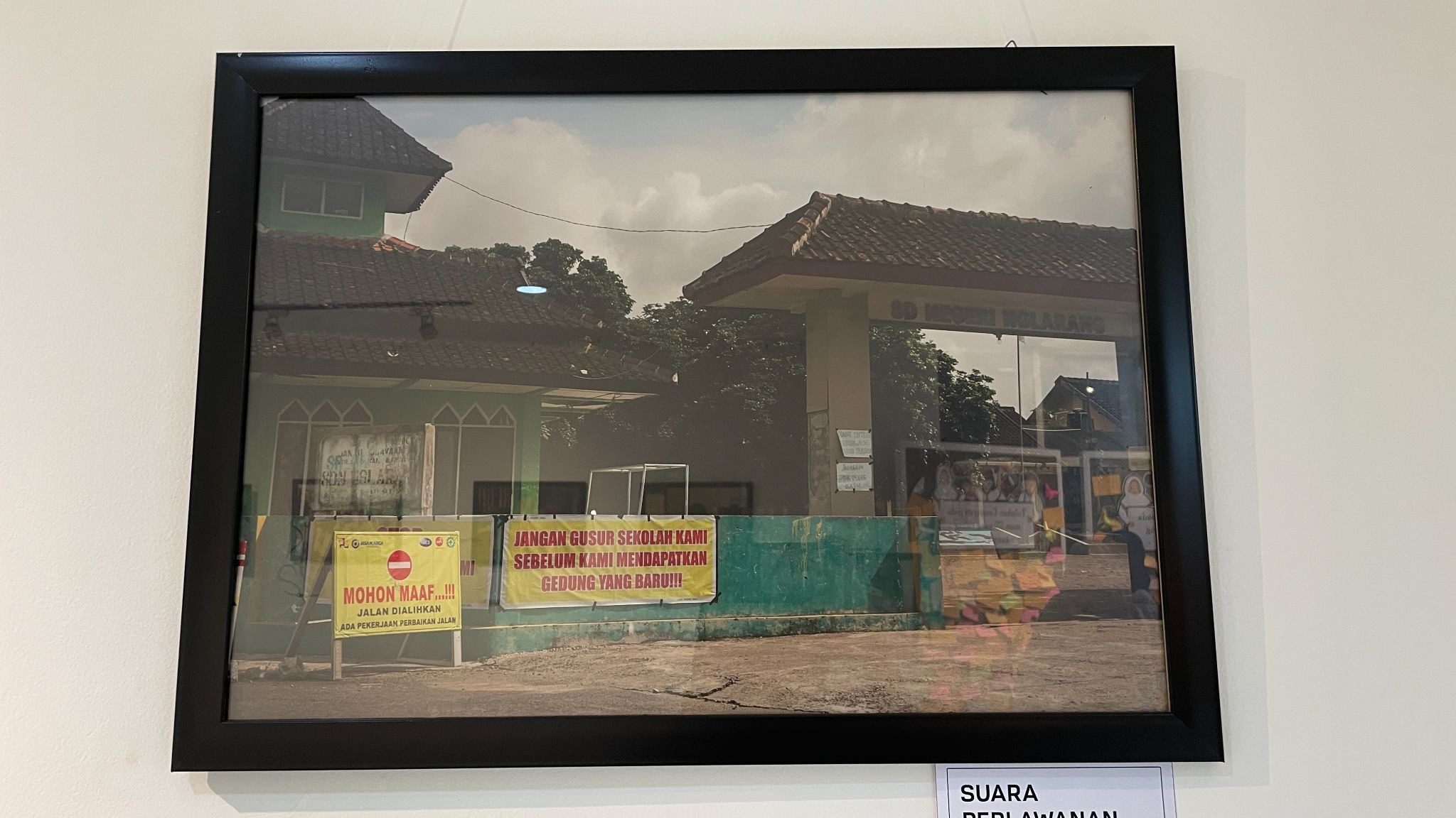 Proses belajar terganggu suara mesin. Gedung sekolah pun terancam digusur tanpa kepastian soal relokasi. Tarik ulur dari pemerintah ini menyulut protes dari wali murid. Spanduk kuning bertuliskan “Jangan gusur sekolah kami sebelum kami mendapatkan gedung yang baru!” terhampar tegas di pagar sekolah. Kompilasi foto ini berhasil memotret kasus proyek pembangunan yang justru menghancurkan.