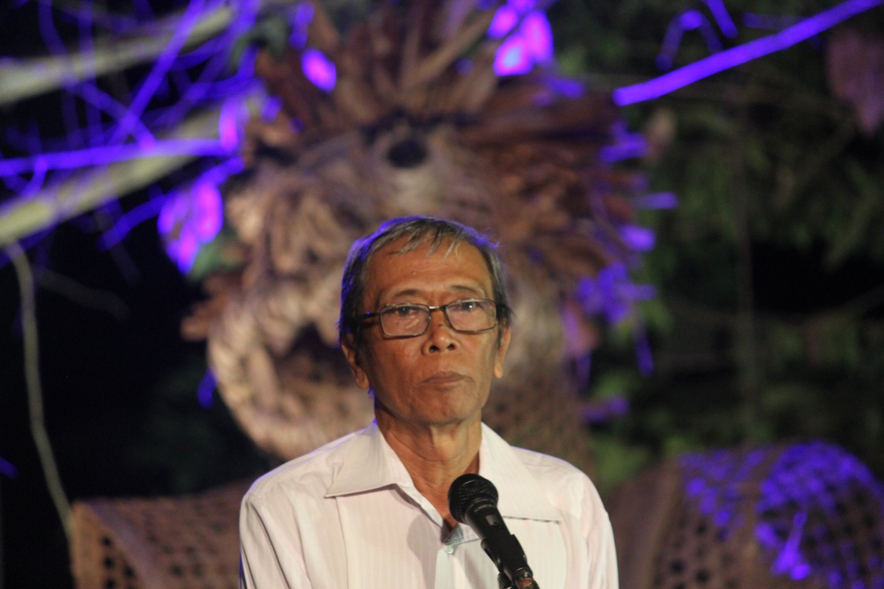 “Sastrawan Jawa ora mung saderma “pengarang” utawa “tukang ndongeng”. Nanging uga bisa madeg kayadene filsuf, guru, juru warta, talange kawruh, bocah angon, wong tani, abdi tumrap masarakat Jawa ing sadhengah papan,” ucapnya sambil menyemburkan asap rokoknya.