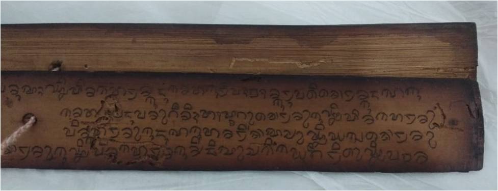 …◦isora, mijil taṅ brama wisṇu, mahadewa, (keluarlah Brama, Wisnu, Mahadewa) mijil ta catuṙ jalma, bramana satriya, wesyara, ludra, (keluarlah empat manusia yaitu Bramana, Satria, Wesyara, dan Ludra) samana miji(l) ta lek pkěn, mwaṅ tarulata gulma jagama, pepelika, mu waḥ tabutabuti jīm ḅiriti ḍŋěn gandaṙwwa ◦ulusiŋa, bancaluŋan… (seketika itu keluarlah Lek Pkěn, juga Tarulata Gulma Jagama, Pepelika, juga Tabutabuti Jīm ḅiriti ḍŋěn Gandaṙwwa ◦Ulusiŋa, Bancaluŋan). Teks ini menceritakan keluarnya dewa-dewa disertai dengan keluarnya manusia dan berbagai jenis mahkluk halus.